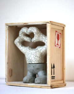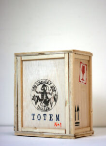 Totem, kleinste beeld in transport kist.